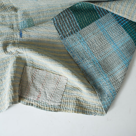 reversible vintage kantha throw | sky blue
