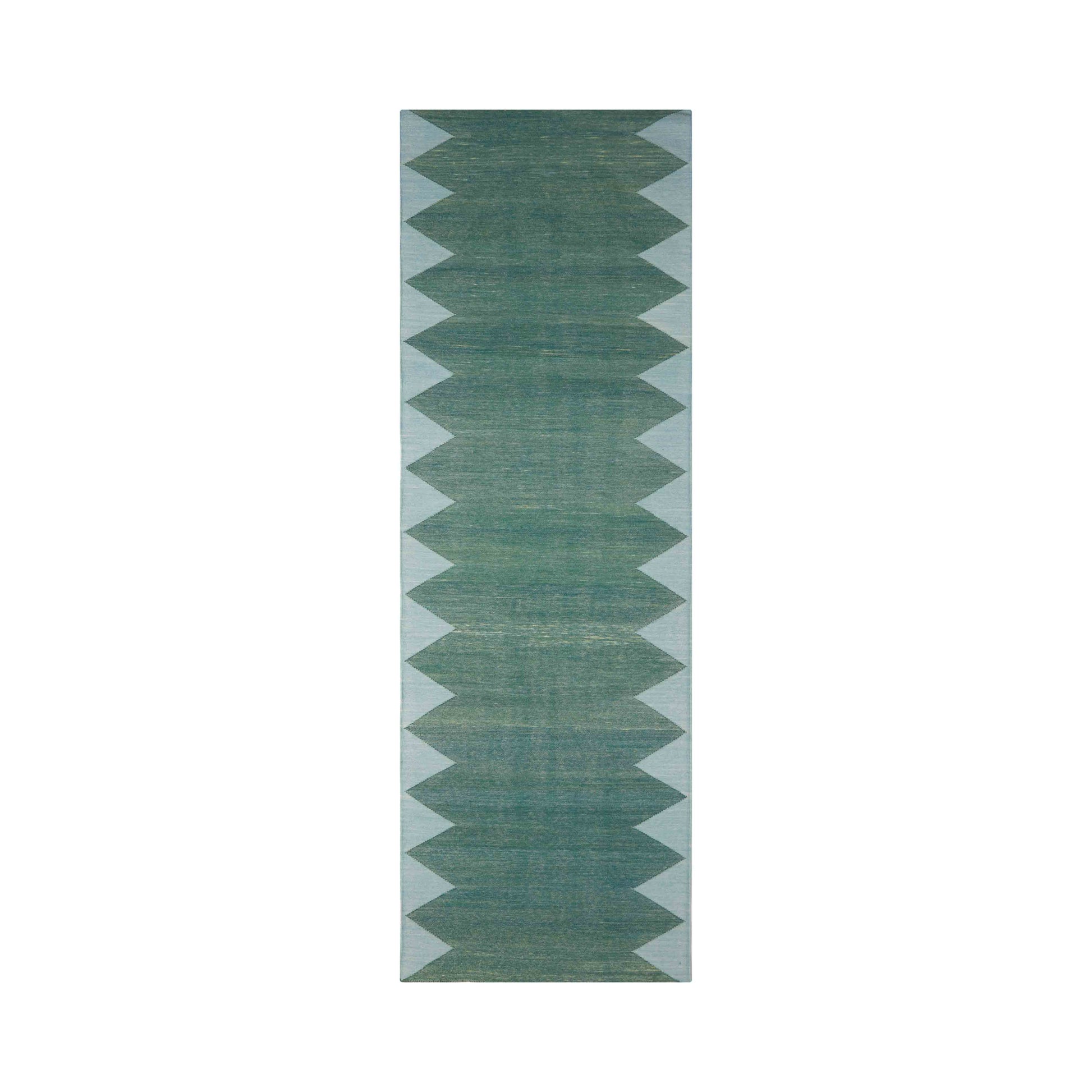 Ces tapis à teinture naturelle sont tissés à la main par une coopérative de femmes d'Oaxaca. Le dessin ondulé est symbolique de la terre.